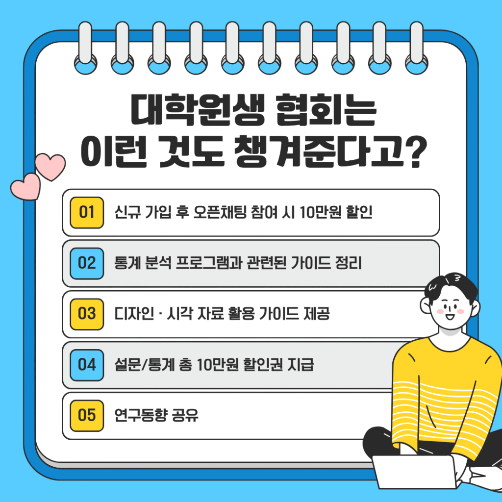 한국 대학원생 협회에서는 대학원생들을 위한 수많은 정보와 혜택, 그리고 강의를 제공합니다.